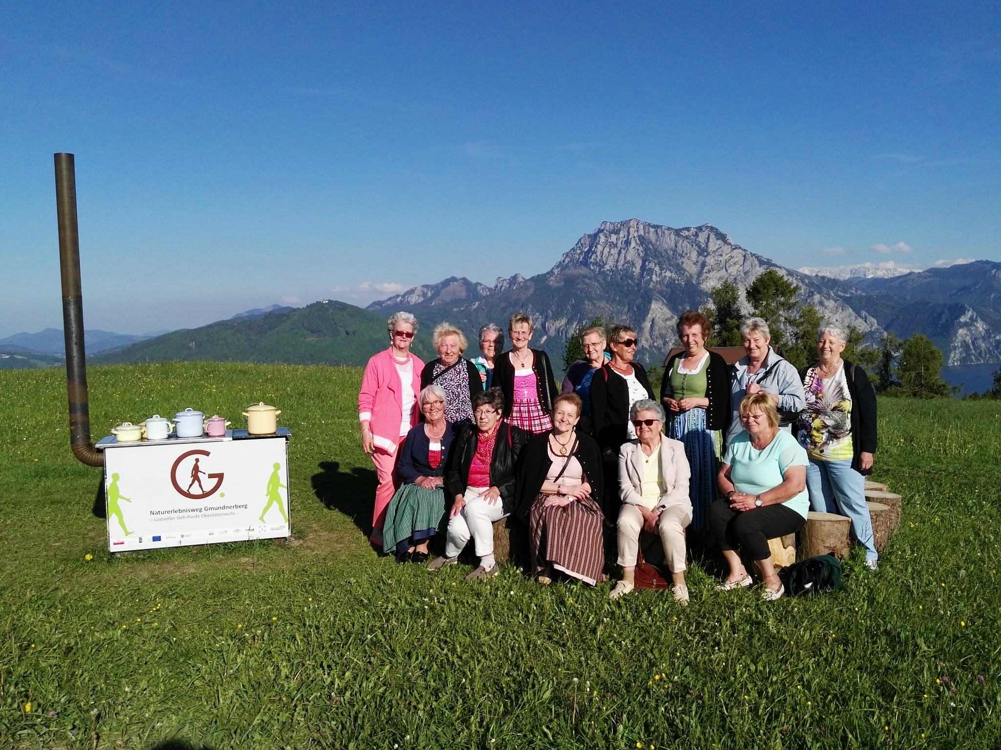 Unser Muttertagsausflug ging heuer auf den Gmundnerberg. Bei traumhaft schönen Wetter gingen wir den Naturerlebnisweg der am 5.5. eröffnet wurde zum Gasthaus Urzen. Bürgermeister Ing. Dieter Helms begleitete uns. Stationen wie ein Tischherd mit altem Geschirr luden uns zum verweilen ein. Hob man den Decken des Geschirrs auf so fand man Hausmannskost vor.