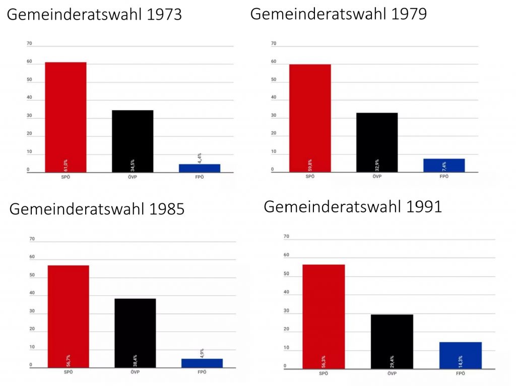 Ergebnisse der Pinsdorfer Gemeinderatswahlen seit 1973