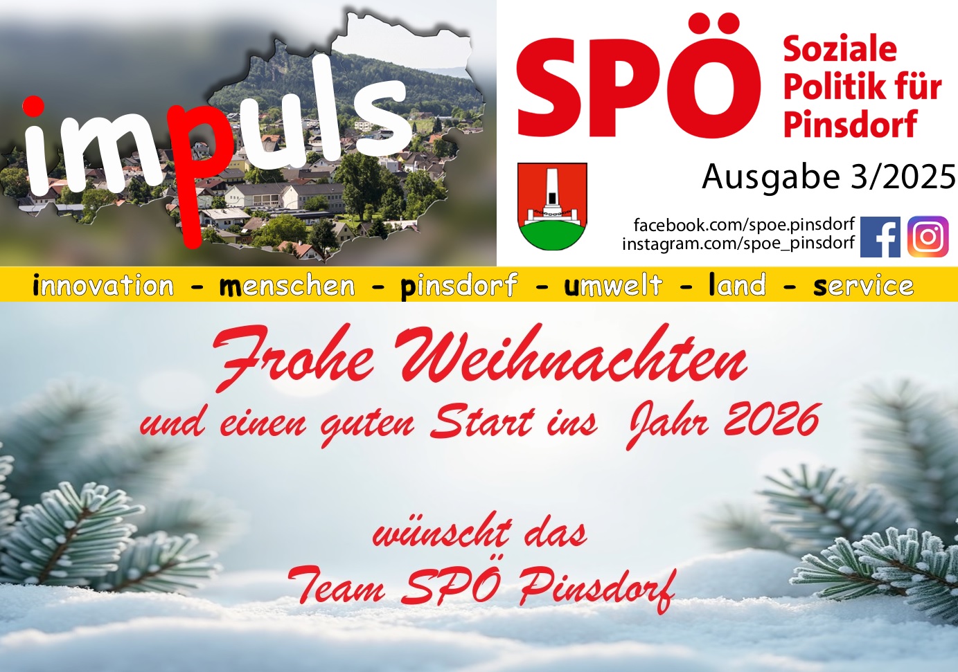 Das Team SPÖ Pinsdorf wünscht allen Leserinnen und Lesern eine friedvolle Weihnachtszeit und ein glückliches neues Jahr 2026